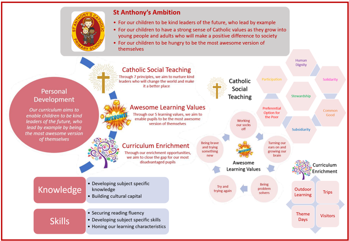 At St Anthony’s, Religious Education (God Matters) and the full range of National Curriculum subjects are delivered across every year group to ensure our children experience a broad and balanced curriculum. These include: English, Mathematics, Science, History, Geography, Computing, French (in Key Stage Two), Art and design, Design and Technology, Music, Physical Education and the Outdoor Curriculum. We work on a theme-based curriculum wherever quality links can be made; we launch and celebrate each theme with exciting hooks, theme days, visitors and trips.