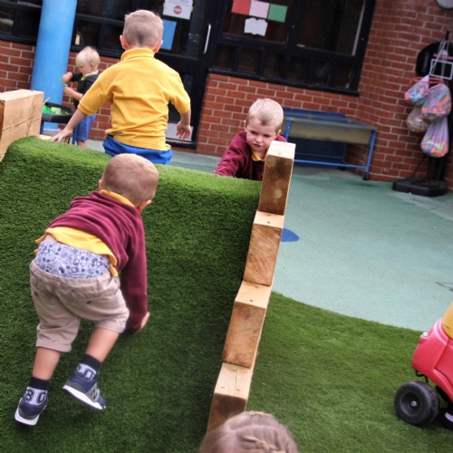 We have a range of gym equipment in the school hall that the children can explore through stimulating, exciting, fun-based activities designed to develop their gross motor skills. We are keen to promote physical activity at an early age to encourage a life long desire for healthy living.